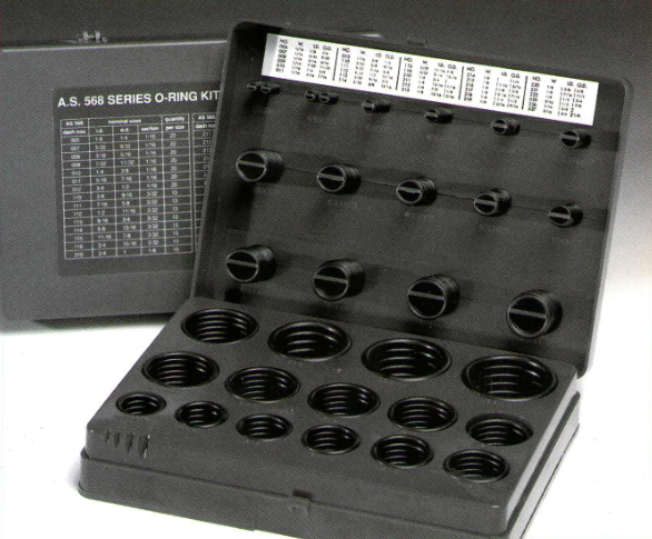 Cajas con diferentes medidas de O-RING. Hay medidas standard en pulgadas y medidas métricas.